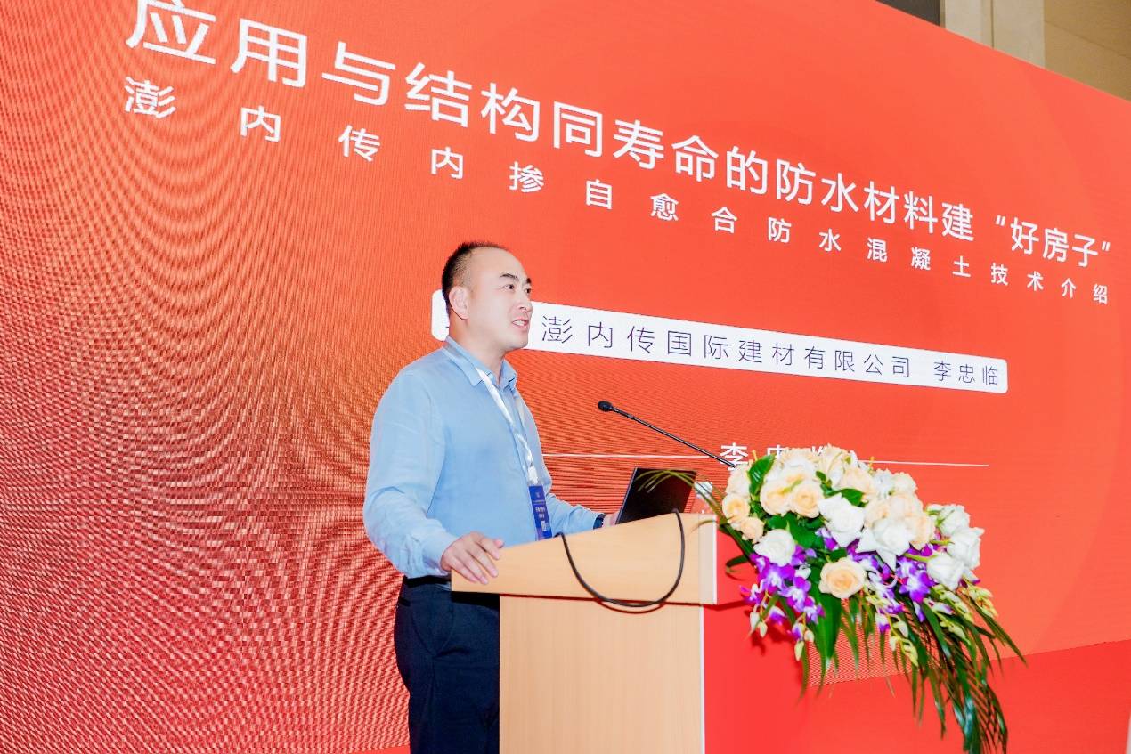 北京澎內(nèi)傳國際建材有限公司市場總監(jiān)李忠臨以《與結(jié)構(gòu)同壽命防水材料助力建造“好房子”》為題作了專題報(bào)告,首先總結(jié)分析了當(dāng)前建筑物滲漏的主要原因,然后介紹了澎內(nèi)傳防水系統(tǒng)的機(jī)理、性能與技術(shù)特點(diǎn),可從根本上解決滲漏問題,最后與大家分享了澎內(nèi)傳結(jié)晶自愈合防水混凝土在工程中的應(yīng)用情況。